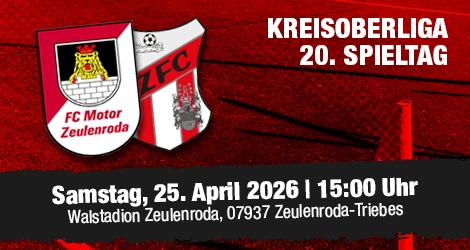(21.04.26 06:43 Uhr) Am Samstag, den 25.04.2026, ist unsere U23 am 20. Spieltag der Kreisoberliga Ostthüringen bei der Mannschaft von Motor Zeulenroda gefordert. Anstoß ist um 15:00 Uhr im Waldstadion in Zeulenroda.