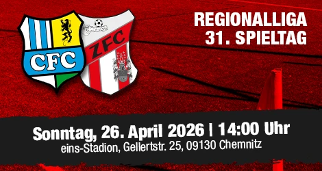 1.Männer | Regionalliga MITTWOCH KOMMT DER BFC (14.04.26 07:56 Uhr) Im Rahmen des 21. Spieltages der Regionalliga Nordost trifft unser ZFC in der Nachholpartie am Mittwoch, dem 15.04.2026, in der heimischen bluechip-Arena auf den ehemaligen Rekord-DDR-Meister BFC Dynamo. mehr ... |