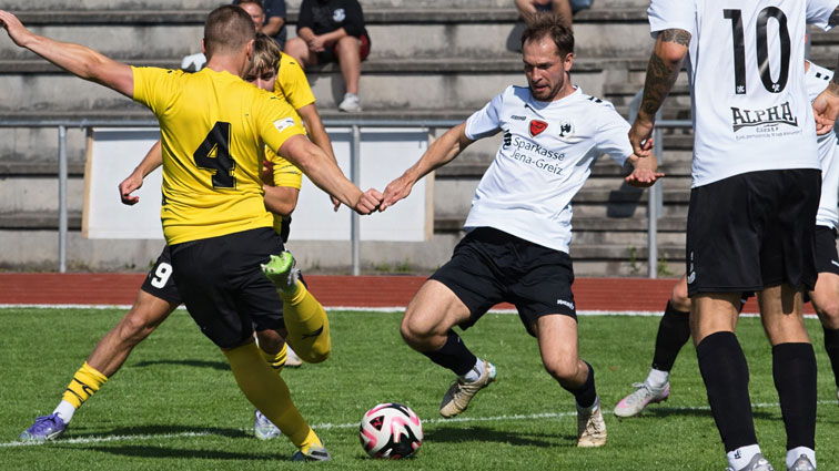 (29.03.26 17:46 Uhr) Die BSG Wismut Gera unterlag beim FSV Schleiz deutlich mit 0:4, nachdem frühe Gegentore und die Rote Karte gegen Florin Doroftei die Partie schon vor der Pause entscheidend in Richtung der Gastgeber kippen ließen. Albert Pohl traf dreifach für Schleiz, während die Geraer nach dem nächsten Rückschlag im Abstiegskampf auf Rang 15 verharren und nun vor dem schweren Auswärtsspiel in Nordhausen stehen.