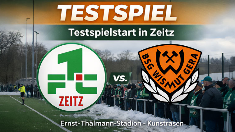 (20.01.26 15:25 Uhr) Der Testspielauftakt führt die BSG Wismut Gera nach Zeitz. Nach der witterungsbedingten Absage in Grünheide wartet nun am Mittwoch der 1. FC Zeitz auf dem Kunstrasen. Ein erster Härtetest zum Start in die Vorbereitung.